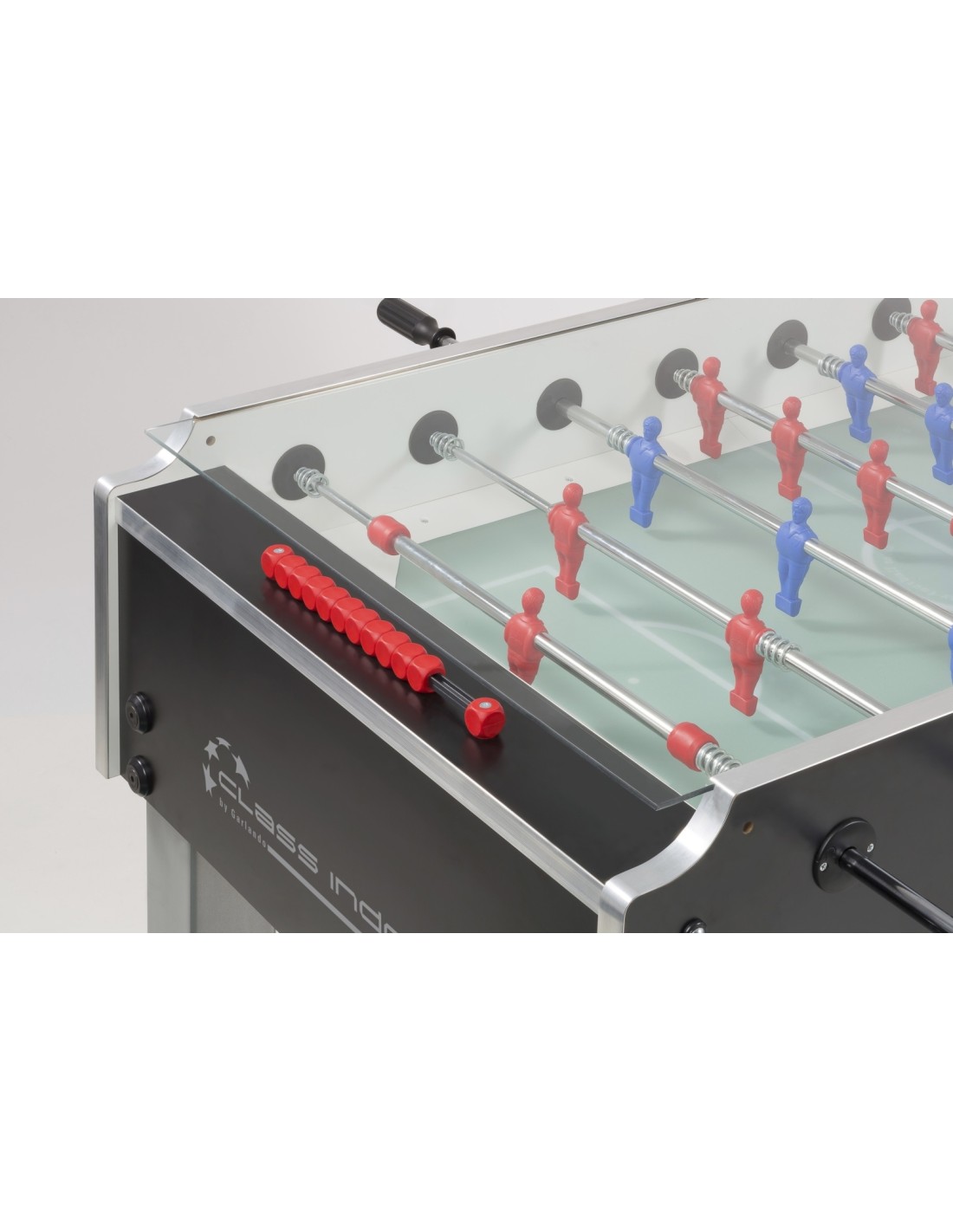 GarlandoFutbolo stalas Garlando Class Indoor, vientisi strypai Pirmasis Garlando stalo futbolas uždengtas viršutiniu stiklu Jis išlaiko kamuoliukus žaidimo lauke, taip užkertant kelią jų praradimui: kamuoliukai patenka į žaidimo lauką per išorinį vamzdį ir išlieka viduje viso žaidimo metu. Tai leidžia žaisti tyliai, nes stiklas slopina žaidimo garsus. Apsaugo nuo kamuoliukų vagysčių viešose vietose, kuriose stalo futbolas skirtas viešam naudojimui, ypač tinkamas klubams, mokykloms ir bendruomenių centrams. Išlaiko žaidimo aikštelę visiškai švarią.