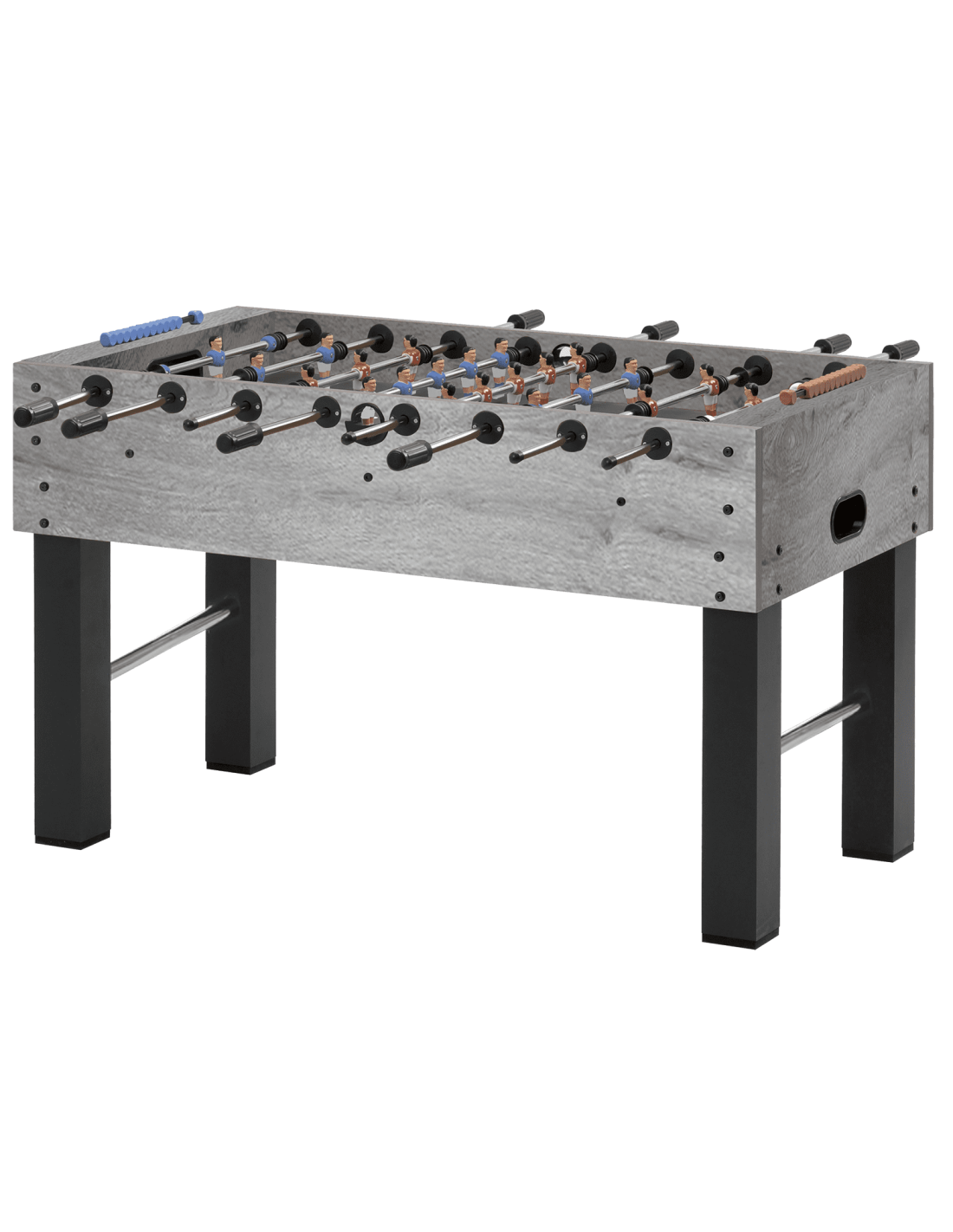 Strypai ir žaidimo figūrėlės: Vientisi pilnaviduriai geležiniai strypai (13 mm skersmens) su spalvotomis figūrėlėmis (trys spalvos) ir amortizuojančiais guminiais žiedais. Strypų galai uždengti plastikinėmis apsaugomis, siekiant užtikrinti didesnį saugumą.