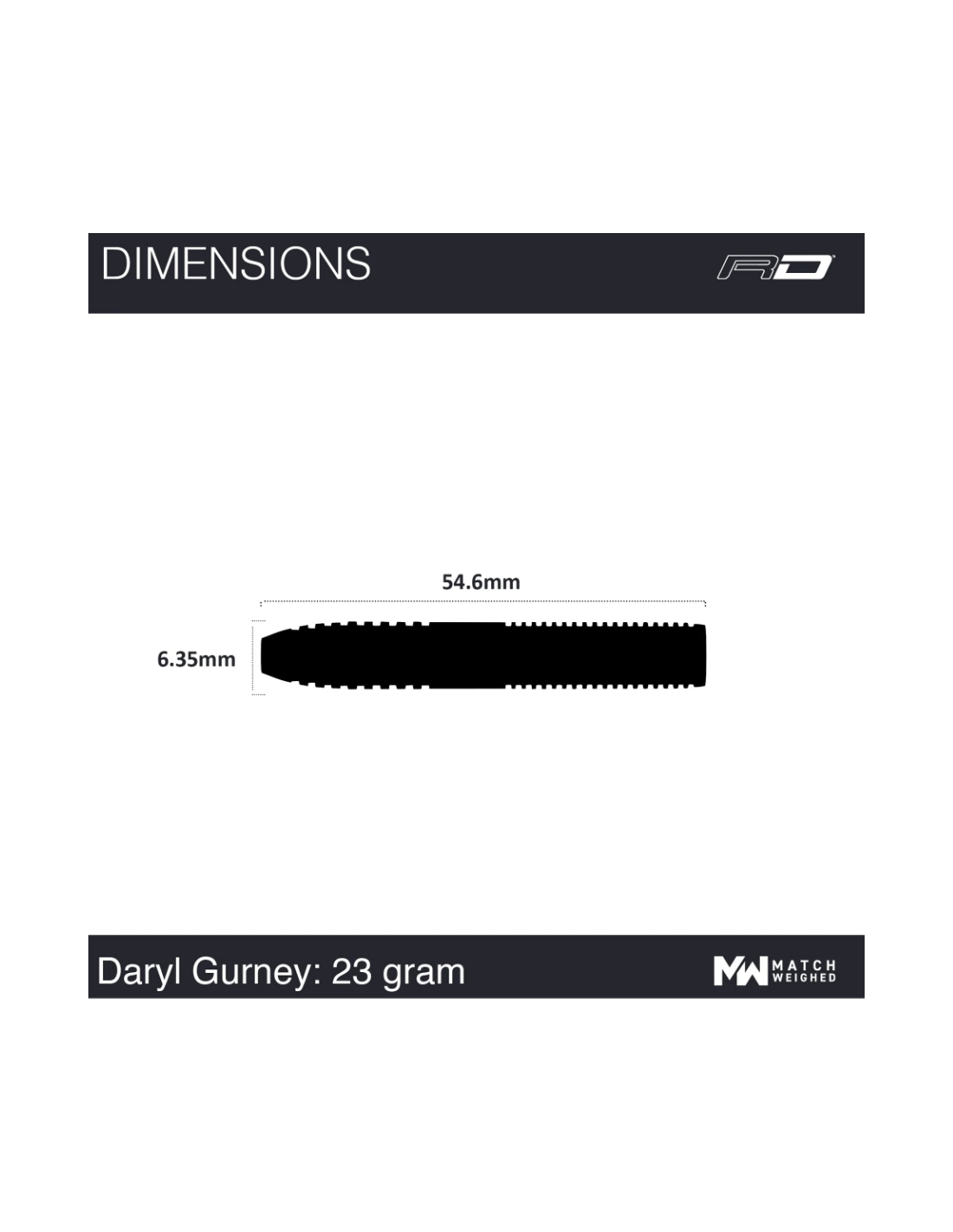 Daryl Gurney greitai tapo PDC superžvaigžde, o šios 90 % tikslios kopijos padėjo jam paskatinti sėkmę. Su stulbinančia titano nitrudo danga, užtikrinančia ilgalaikį veikimą ir sukibimą, aptakus profilis yra būtent toks, kokio norėjo Daryl, siekdamas ggeriausio tikslumo.