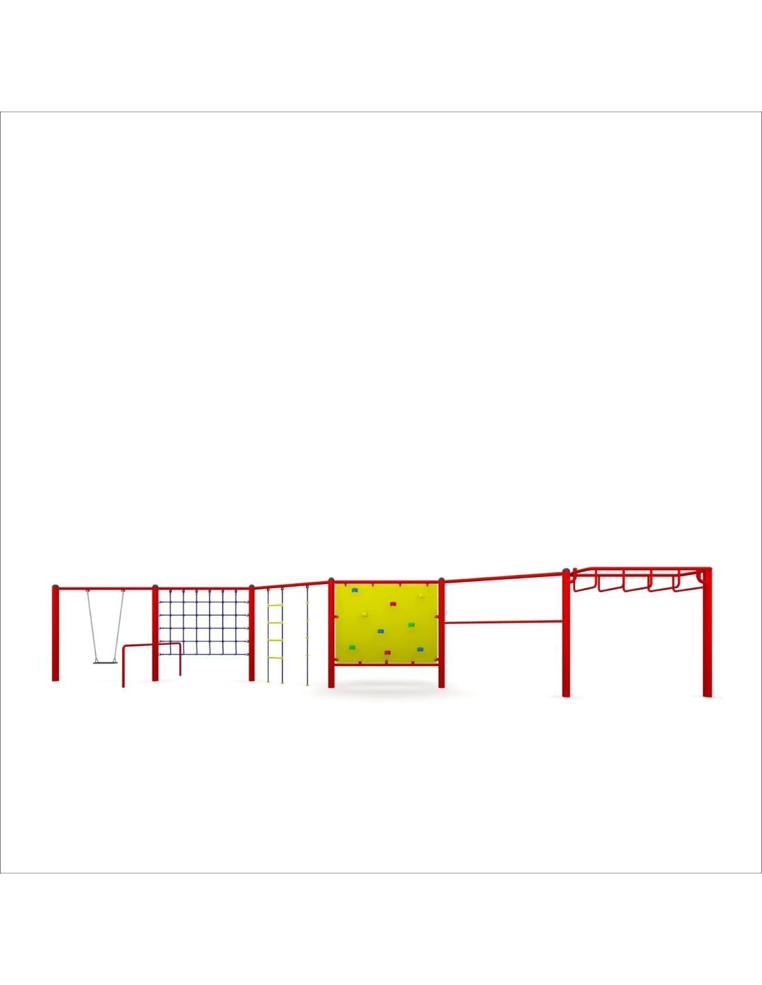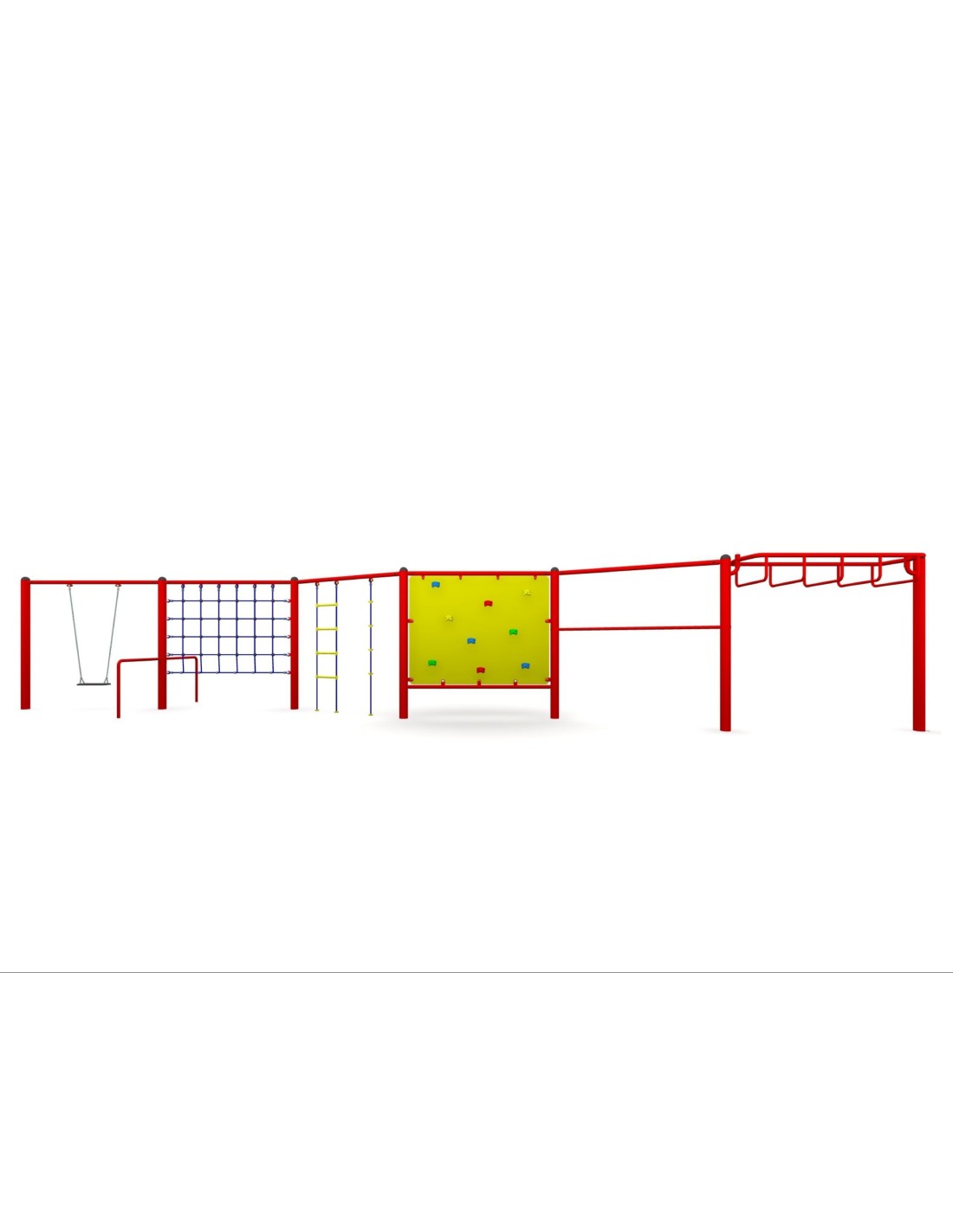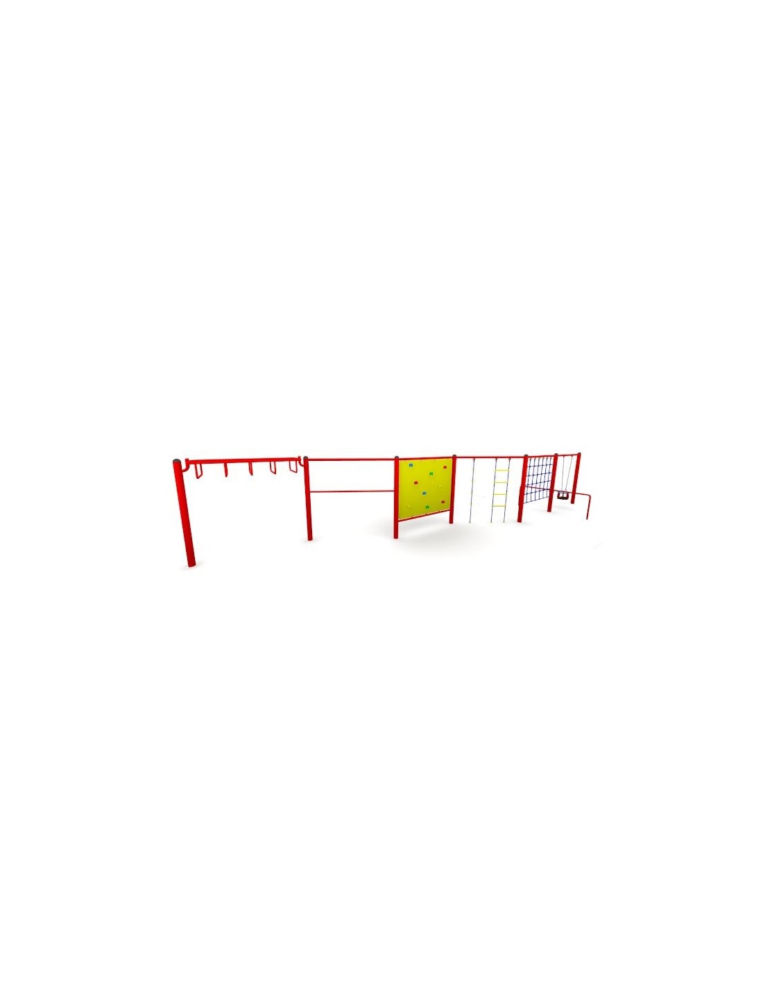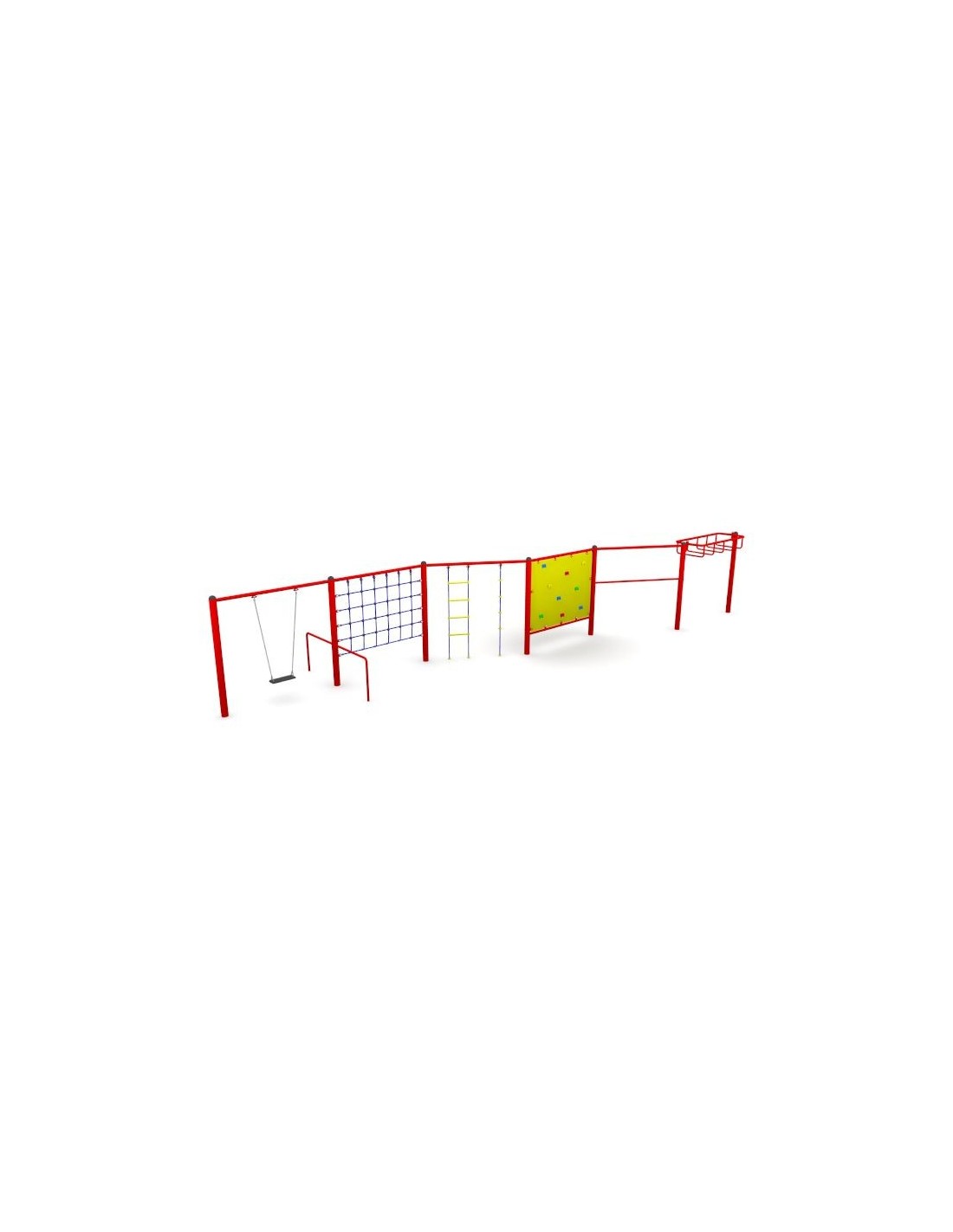 - W skład zestawu wchodzą: huśtawka, ściana z lin, drabinka z liną, ściana wspinaczkowa, trzepak oraz szczeble poziome,