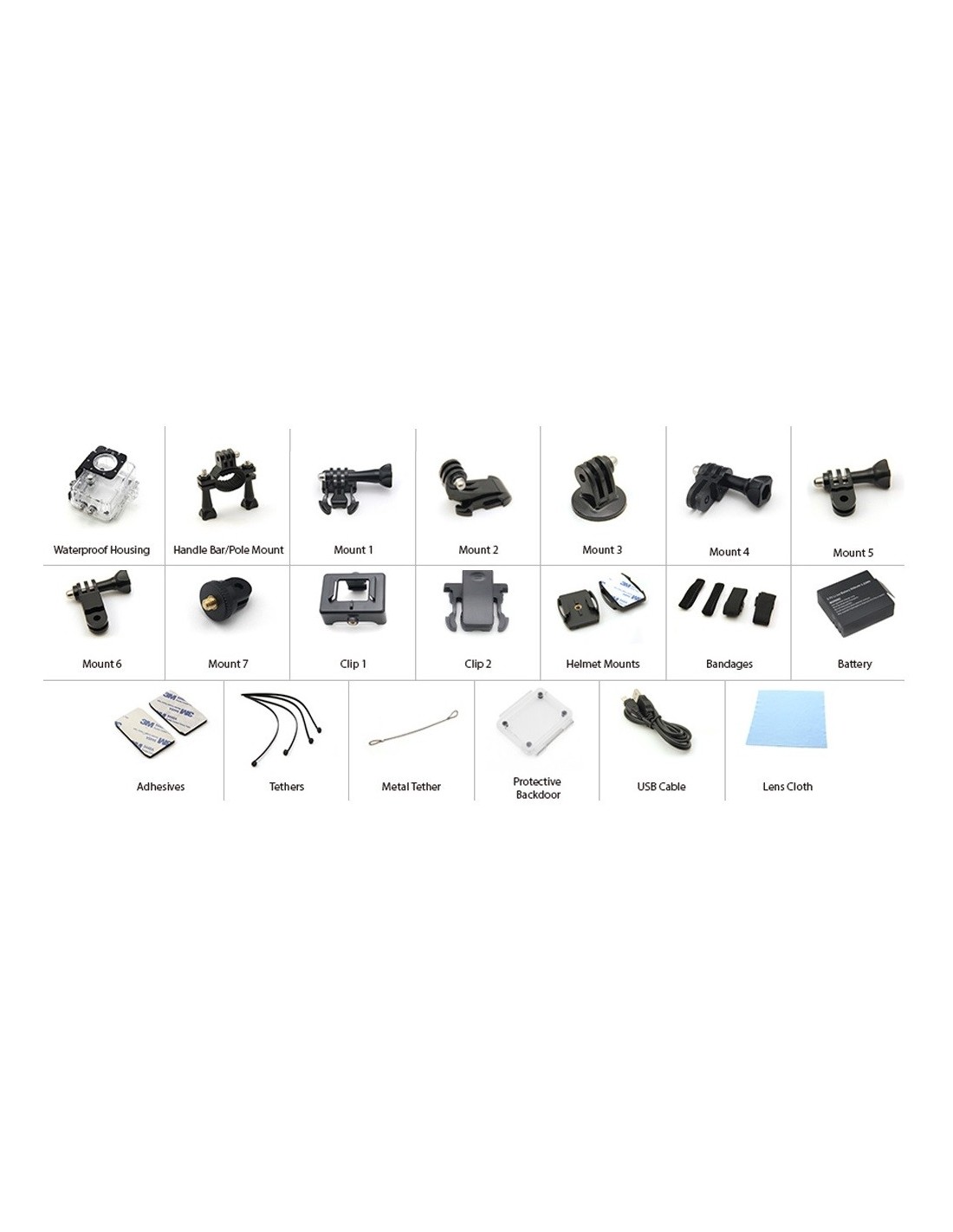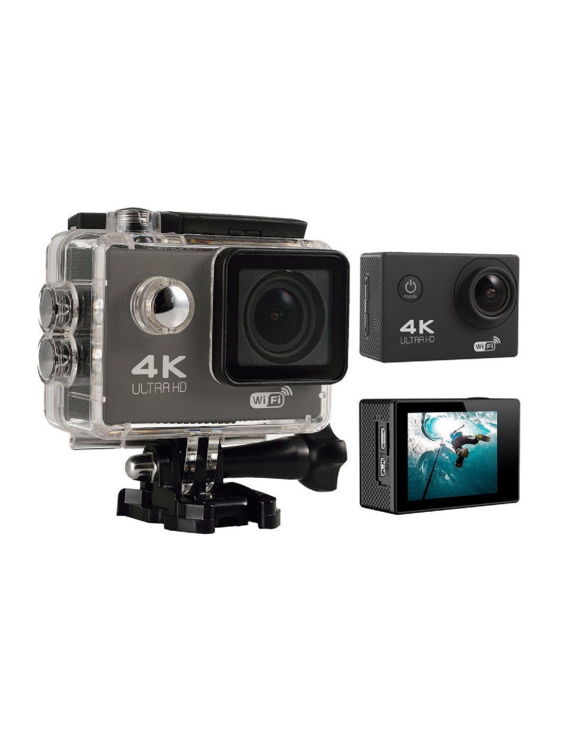 Filmavimo kamera 4K. Puikiai tinka nardant, šokant parašiutu, važinėjant dviračiu ar kt. Komplekte yra daugybe priedų kurie leis pritaisyti kamerą kur tik norite. Taip pat yra visiškai sandarus ir vandeniui nepralaidus dėklas.