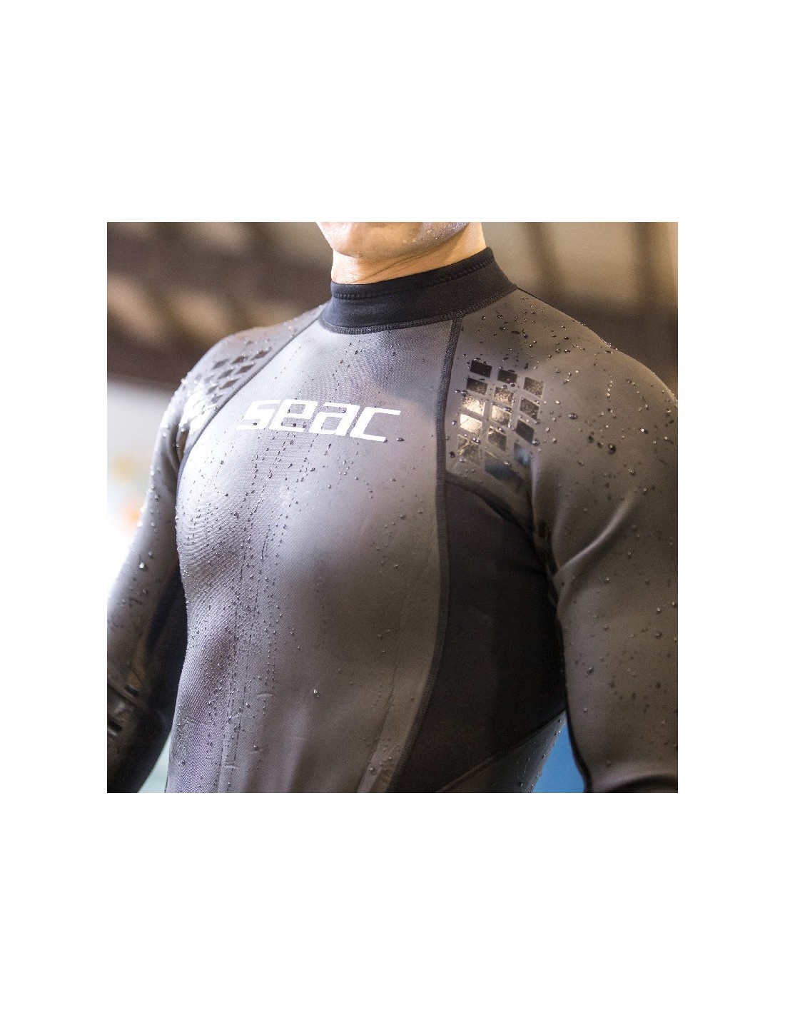 Plokščios siūlės: „Seac Emotion“ neopreno hidrokostiumas yra labai patogus dėvėti dėl plokščių siūlių, kurios apsaugo nuo trinties.