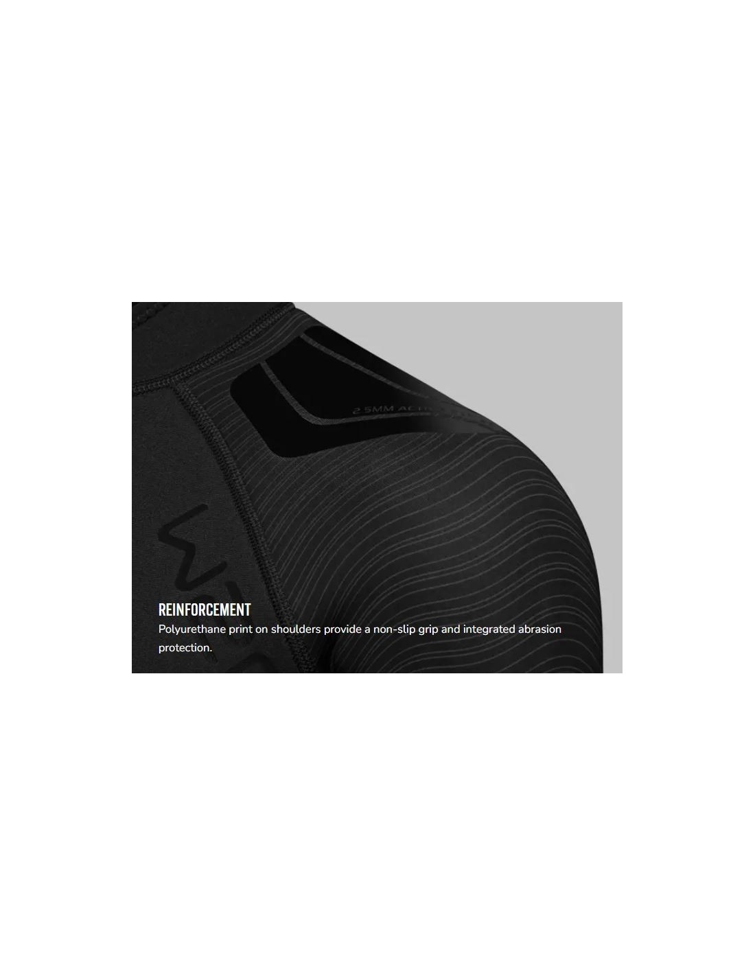 MEDŽIAGA – 2,5 mm storio tamprus „Aquatex“ neoprenas suteikia kostiumui ypatingo patogumo ir lengvumo apsivilkti bei nusivilkti.