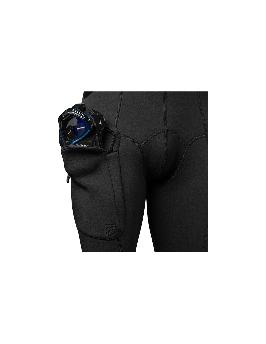YPAČ TAMPRI KIŠENĖ – Integruota kišenė ant klubo. Aptaki ir lanksti, joje pakankamai vietos, pavyzdžiui kaukei . Vandens išleidimo vožtuvai.