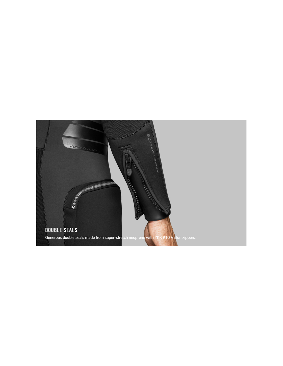Dvigubi rankų ir kojų sandarikliai, pagaminti iš ypač tampraus neopreno su užtrauktukais YKK # 10 „Vislon“, sumažina vandens patekimą, tuo suteikdami daugiau šilumos.