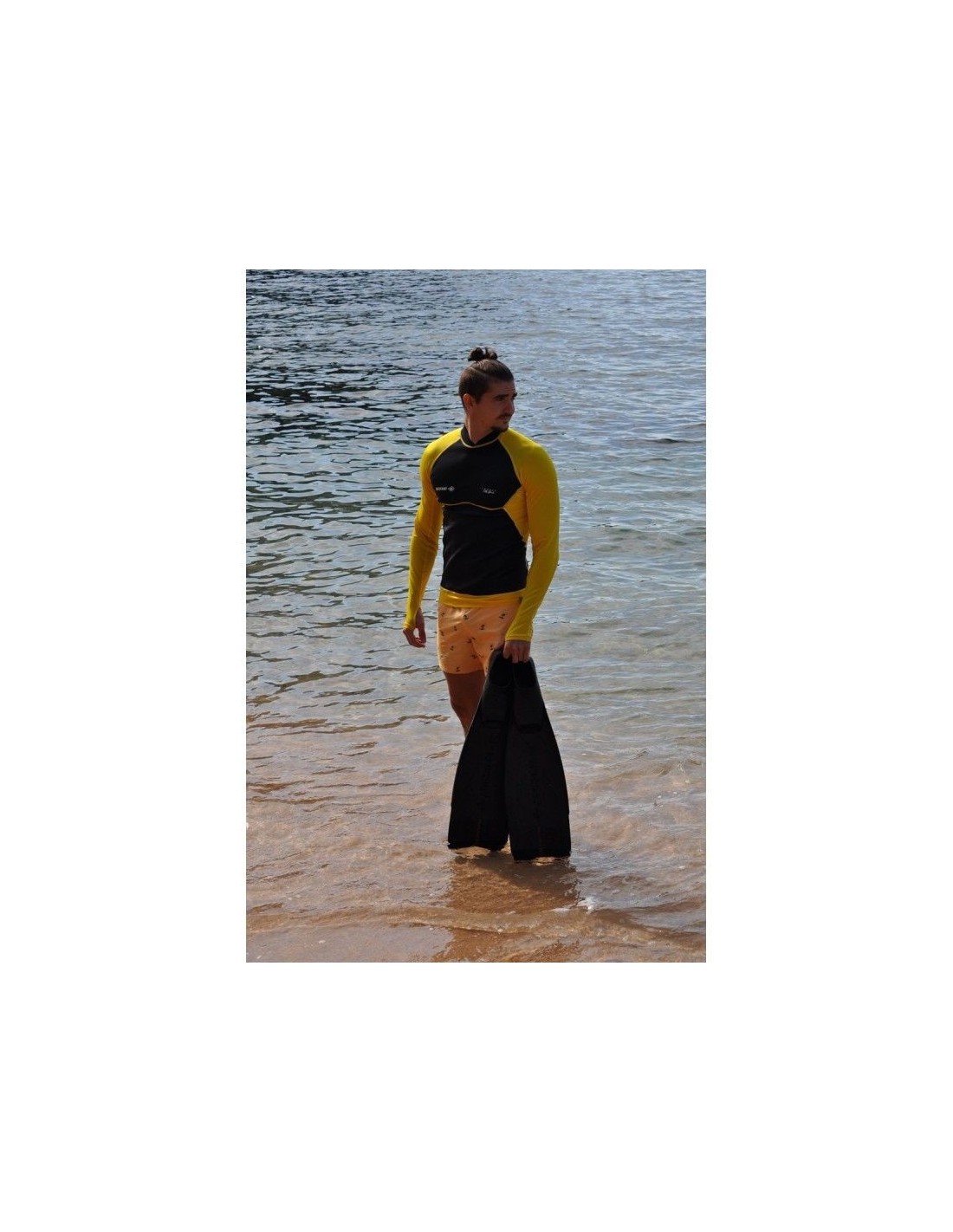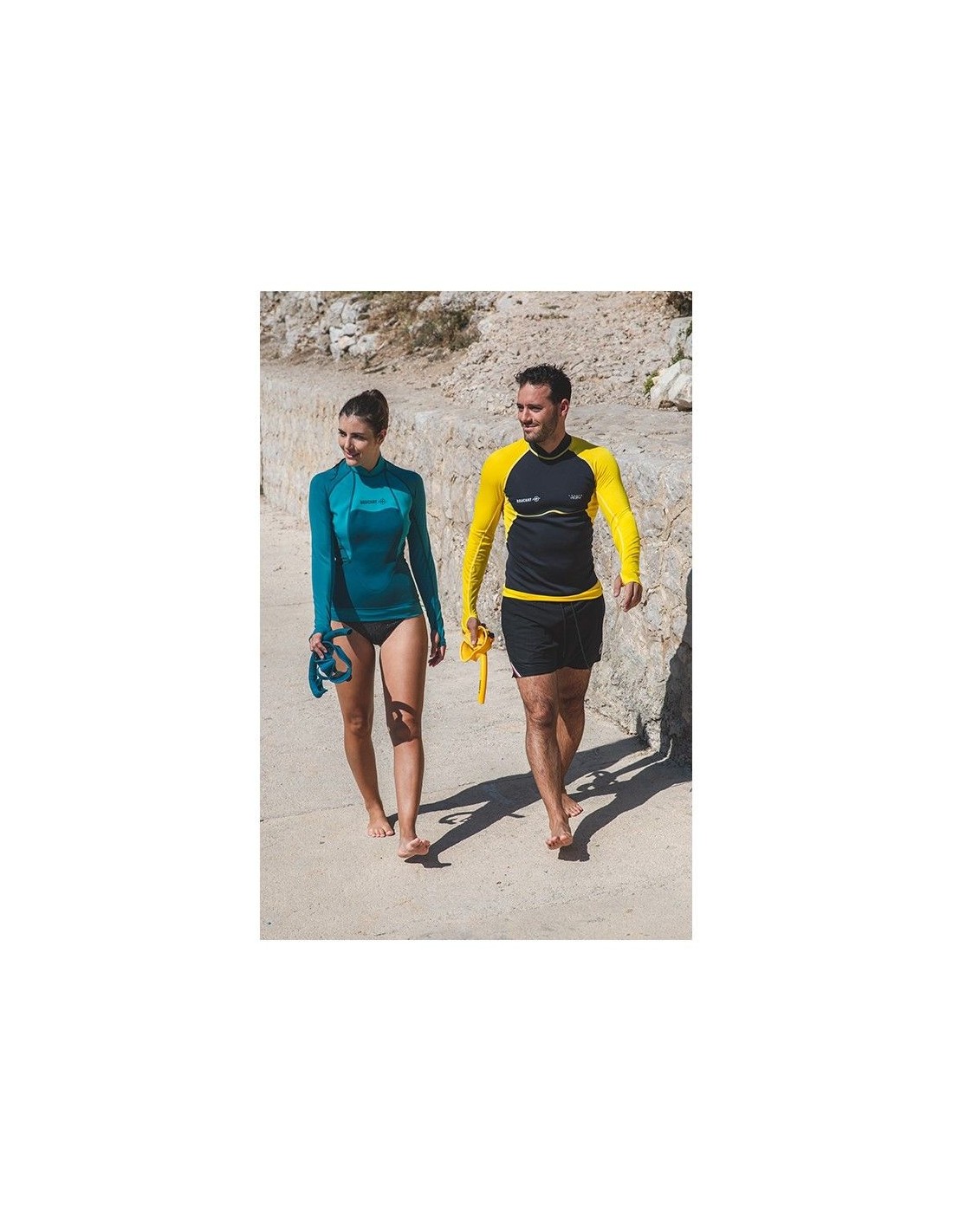 Šiuos marškinius galima dėvėti kaip atskirus drabužius arba papildomai po hidrokostiumu.