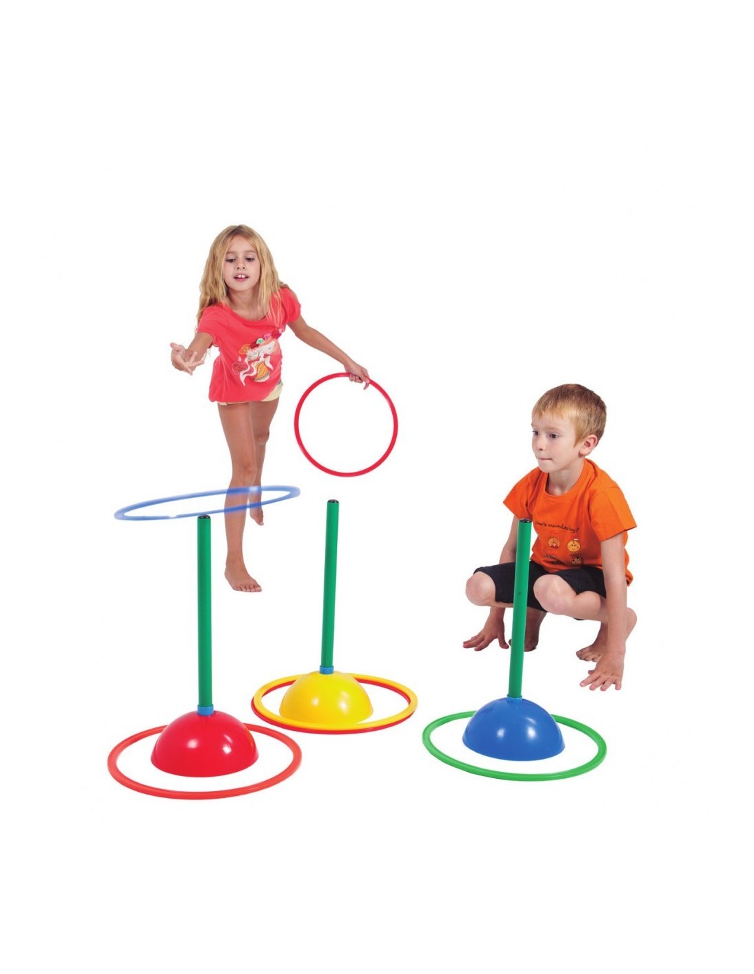 Komplekte: 3 pagrindai, 3 lazdelės, 15 mėtymo žiedų