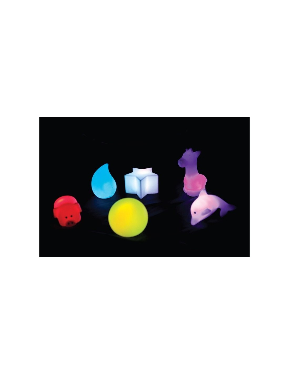 Komplekte 6 skirtingomis spalvomis šviečiančios figūrėlės