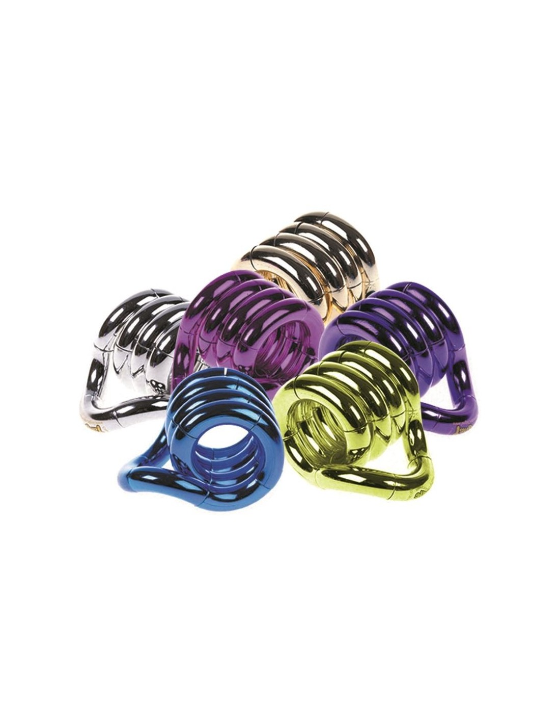 Tangle Jr. Metallic - tai raizginys, kuris privers dirbti abu smegenų pusrutulius! Manipuliuodami raizginiu, vaikai ne tik smagiai leis laiką, bet ir treniruos rankų judesius, stiprins pirštų raumenis, malšins stresą, lavins smulkiosios motorikos įgūdžius, dėmesio koncentravimą. Suraizgytas jis puikiai tilps į kišenę, tad galėsite imti jį visur su savimi Tangles galima naudoti nuo 3 metų.