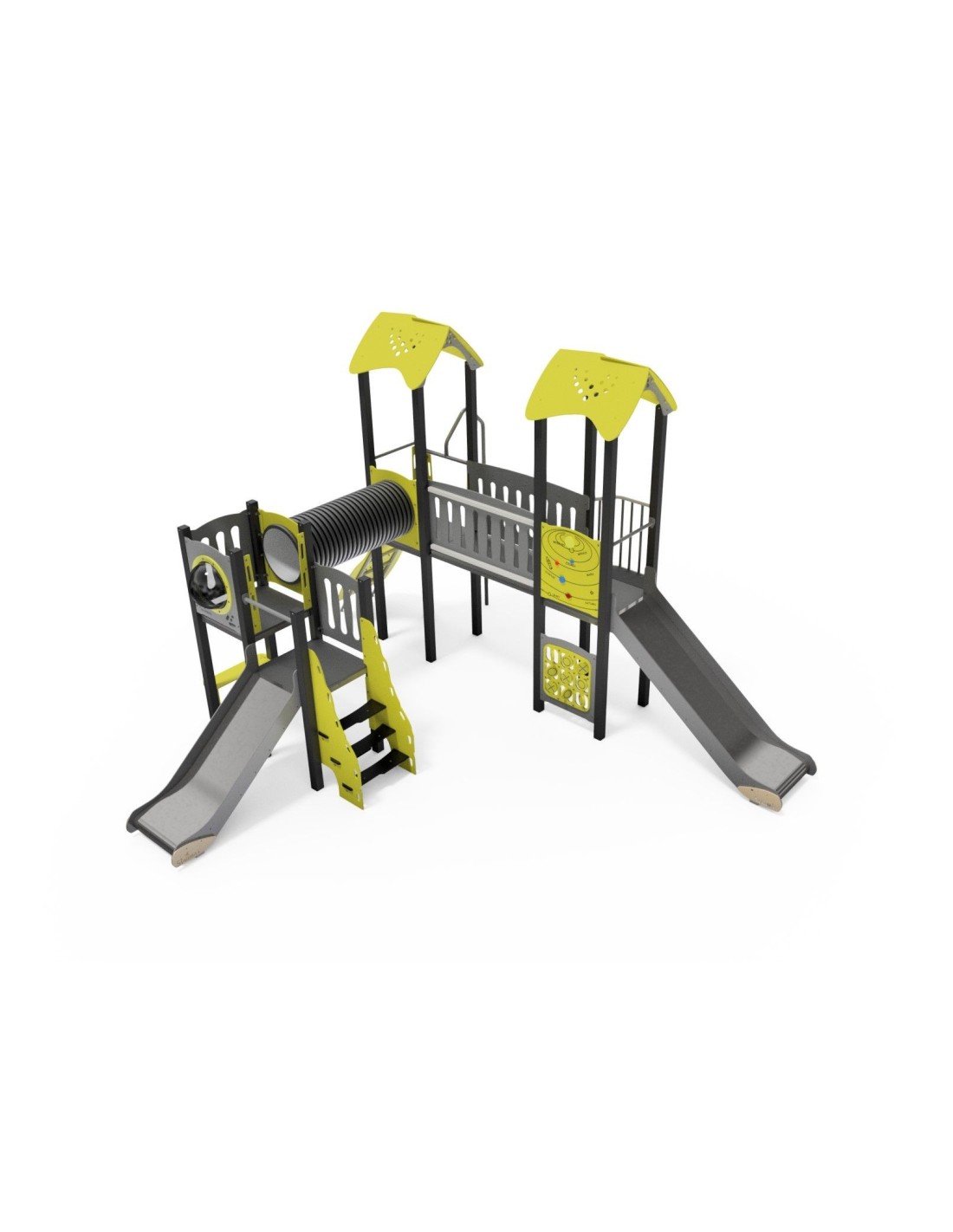 Pasakų ir kūno rengybos žaidimų rinkinys patiems mažiausiems vaikams. Ryškios spalvos ir įdomios formos nukels smalsius mažuosius į pasakų linksmybių pasaulį. Čia rasite juokingų monstrų, žaidimų, linksmų gyvūnėlių ir nedidelių laipiojimo bei slydimo iššūkių.
