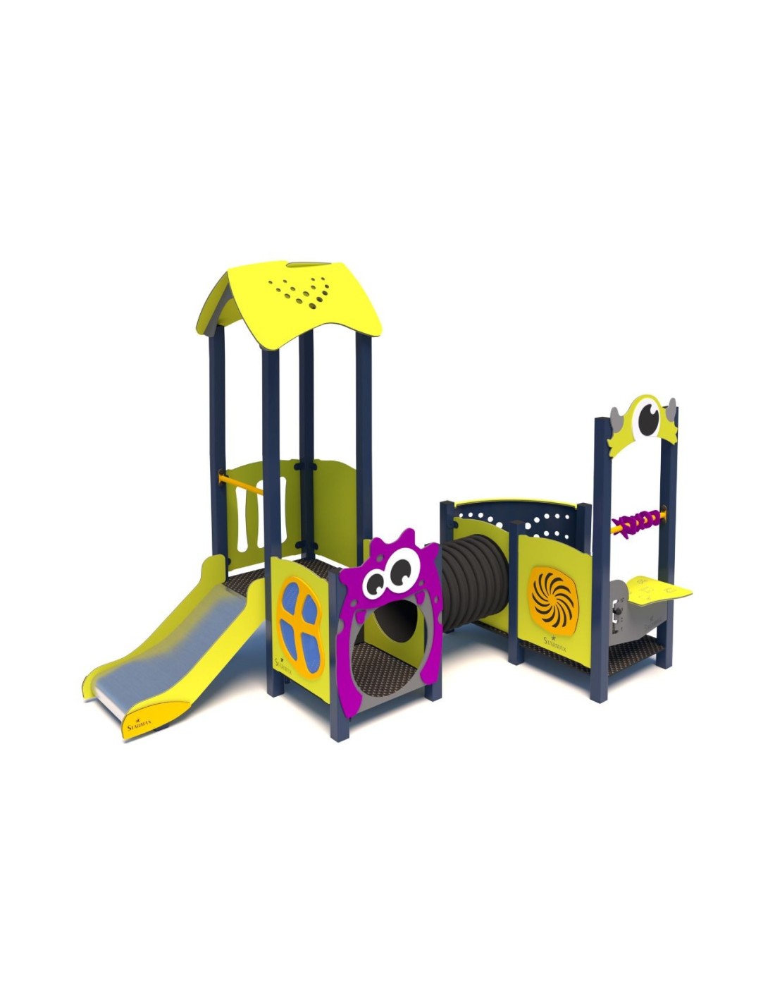 Pasakų ir kūno rengybos žaidimų rinkinys patiems mažiausiems vaikams. Ryškios spalvos ir įdomios formos nukels smalsius mažuosius į pasakų linksmybių pasaulį. Čia rasite juokingų monstrų, žaidimų, linksmų gyvūnėlių ir nedidelių laipiojimo bei slydimo iššūkių.